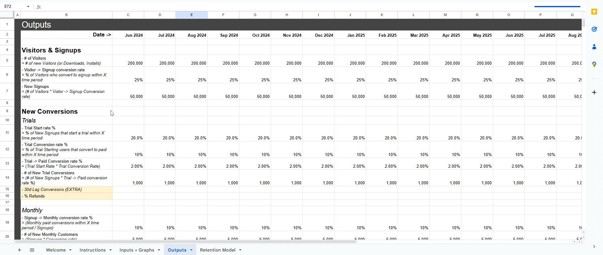 Example Macro Growth Model spreadsheet