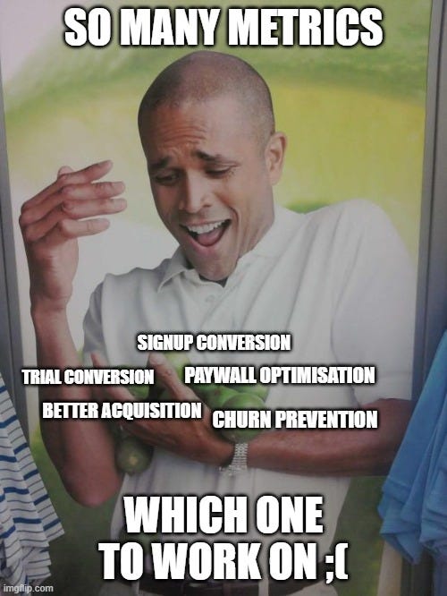 This means that a similarly realistic goal for Signup & Paywall conversion would be an order of magnitude different in terms of impact.